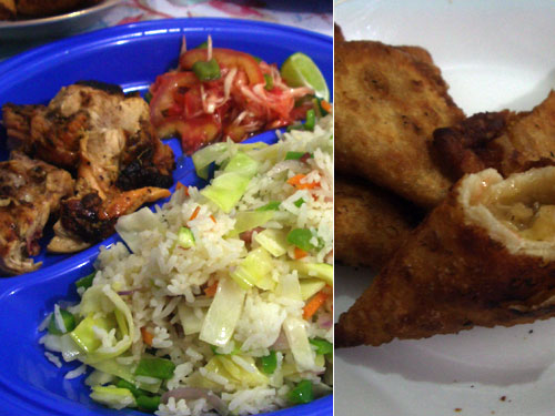 献立:ピラウ×2、青菜の炒め、ジュース×2