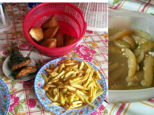 献立:魚のフライ、フライドポテト、マンダジ