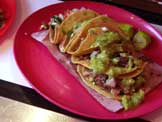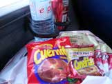 牛肉のタコス、ヌードルスープ、発泡水、マリアッチへのチップ(N$10)