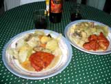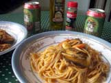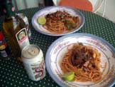 トマトソーススパゲッティー、ビール