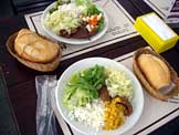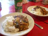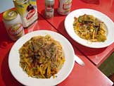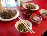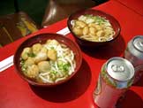 あつもりの蕎麦、魚のすり身ボール、梅干