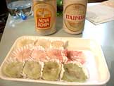 ミニ大福、レモンチリ味のピーナッツ、ビール