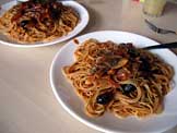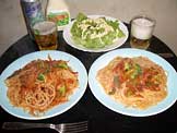 トマトスパゲッティー、ビール |