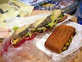 サラミとサラダ菜のバゲット、レーズンパン、水500ml
