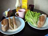 バゲット、レタス、マヨネーズ、オレンジジュース |