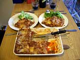 ラザニア、レタス、赤ワイン
