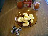リンゴ、ビタミンジュース、チョコレート