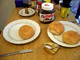 カイザーゼンメル、ヌッテーラ、牛乳、コーヒー、紅茶、オレンジジュース |
