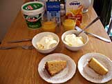 パウンドケーキ、オレンジジュース、牛乳、コーヒー、紅茶