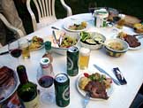 お肉類、サラダ、ワイン、ビール、ケーキなど