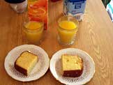 パウンドケーキ、オレンジジュース、牛乳、コーヒー、紅茶 |