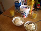 洋なし、モモ、ヨーグルト、オレンジジュース、牛乳、コーヒー、紅茶 |
