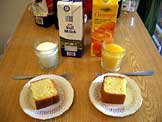 友人のお母さんの手作りケーキ、オレンジジュース、牛乳、コーヒー、紅茶