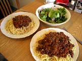 ハンバーグステーキ、塩茹で野菜、レタス、スープ