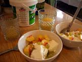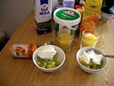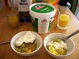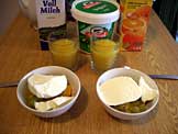 もも、ぶどう、ヨーグルト、オレンジジュース、コーヒー、紅茶