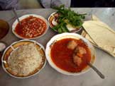 ナスとトマトの煮物、挽き割り小麦のバター炒め、鶏半羽