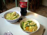 野菜たっぷりインスタントラーメン卵入り、コカコーラ