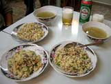牛ひき肉の炒飯、野菜スープ