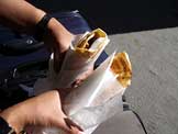 シュワルマ(ケバブをクレープで巻いたもの)(夫)、バナナ(妻)
