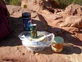 パン、アプリコットジャム、チーズ、コーラ |