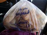 アエーシ(エジプトの平たい袋状のパン)、アプリコットジャム、牛乳、オレンジジュース、コーヒー |