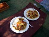 チキンカレー、イカ野菜炒めご飯、ベドウィンシャイ(茶)