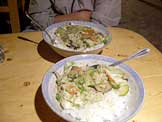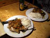 チキンの野菜ソース煮、ご飯、ビール