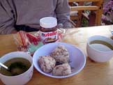 昨日もらったまかない飯のお握り、チキンコンソメスープバジル入り |