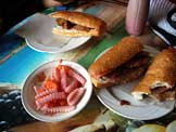 ミンチ肉のサンドイッチ×2、ミンチとスクランブルエッグのサンドイッチ×1