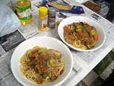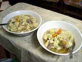ヒヨコマメのトマトスープ、ミートマカロニ
