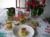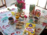クラッカー、紅茶、オレンジジュース、牛乳 |