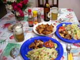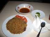 豚肉とマッシュルームの炒め、鶏炒飯、ビール×2、税とサービス料16%
