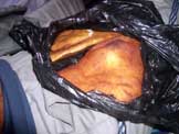 パウンドケーキ、昨日の野菜炒めの余り、オレンジジュース、牛乳 |