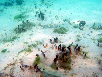 水の透明度が高く、波がなくて静かな海だからこその風景だ。