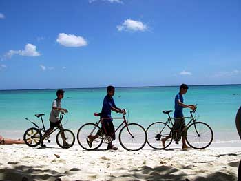 週末ともなると、地元の人もやってくる。ただし、私たちのいるホテルの前ではなく、入り口の林の前の海に入るのが常だ。だが、目の前は通り過ぎる。自転車の男の子、追いかけっこしている女の子。