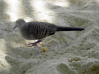 そしてここでお弁当を広げていると、必ず親しげにやってくるのが鳩。といってもモーリシャスの鳩で喉物がシマになっている奴。あまり人を怖がらずに、足元に投げたパウンドケーキをつっつく姿が可愛い。かなりナイーブなのか、3回くらいつっつくと忘れて別の所にいってしまい、一周してからまた気づくということを繰り返していた。