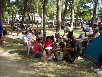 そこに至るまでは椰子の木ばかりが生えているのだが、この一本だけは違う種類の樹木で、密集した木の葉が安定した木陰を作り出してくれていた。ここから更に右手も椰子の木ばかりが続く。この大きな樹木は長期滞在組みのお気に入りの場所で、イースター前はフランス老人の集会所のようになっていた。