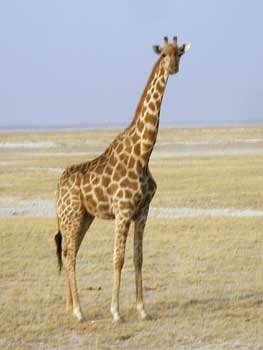 ブッシュの中でヌーを見かけた後、ブッシュが終わって枯れたような黄金の草の生えるサバンナにやってくると、キリンの登場だ。