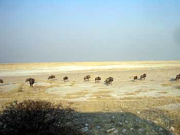 ロンプラには「”エトーシャ”とは現地の言葉で”水が干上がった偉大なる白い場所”という意味があるが、それは適切なネーミングだ」と書かれていて、この道を走るとその意味がよくわかる。