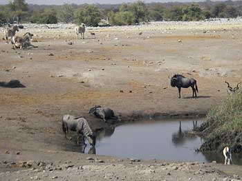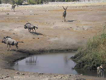 しかし、数分もたたないうちに次々と動物が現れては去って行き、まさにエトーシャ国立公園の醍醐味を堪能することになった。時間の経過を追って主な動物の動きを紹介すると・・・。