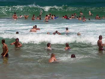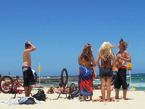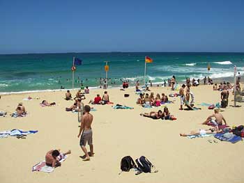 ざーっと見渡して、私たちは最初に見たビーチに寝転んで数時間を過ごした。シドニーのボンダイビーチもそうだったが、ここのビーチもこんなに街中にあるにもかかわらずとってもきれい。波が荒く海水温度が低いのもボンダイビーチに似ていた。それにしても狭い「海水可能区間」にうんじゃり地元の若者が集まって、大きな波が来るたびに歓声を上げて飛び上がるのを見ているのはなかなか面白い。
