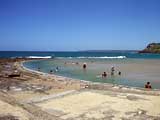 このビーチを左に歩いて行くと、海の水を引きこんだ天然プールが2つあった。一つはほとんど水のないような浅瀬から始まって、せいぜい大人の膝くらいまでのとても浅いプール。小さな子供達にとって、泥んこ遊びとプールが一緒になっている魅力的な場所。
