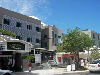 このホテルとコンドミニアムの並ぶ裏手がヌーサヘッドのメインストリートになっている。