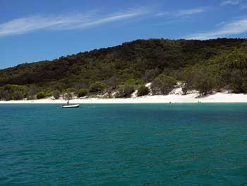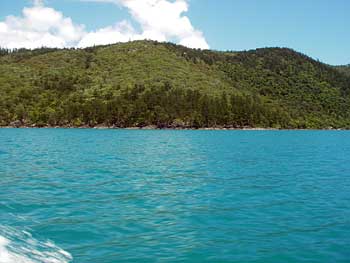 「みんなー!シュノーケリングは楽しかったかーい?イェーイ!」と船長が言ってもシーンと沈黙が広がる。グレートバリアリーフの近くでシュノーケリングという事で、みんなパンフレットにあるような夢のような海中を期待してきていたことに間違いない。まぁ、雨季に来ている客を相手にするのは大変だけど慣れてもいるのだろう。船長はさして気にする風もなく、「じゃぁ、次はホワイトヘブンビーチに移動、そしてお昼ご飯だ!」と快調に船を飛ばした。