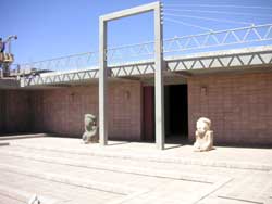 この壁の向こうに回りこむと中庭になっており、右側のホールに案内れた。この博物館は今現在建築中の部分があり、中庭の屋根部分らしきところが工事中だった。この博物館自体がまだまだ未完成であり、現在進行形のところのようだ。
