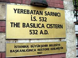 地下宮殿の入り口には「イェレバタン・サルヌジュ」と書かれている。ガイドブック地球の歩き方によれば、「地に、沈んだ」という意味らしい。