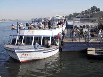 このフェリーはローカルフェリーなので料金はEGP1(=US$0.17)だ。ここでは、私設フェリーを行っている客引きが、ローカルフェリーと同じ値段で連れて行ってやるから往復でチケットを買えだのと言ってくる。ぜーんぶ無視して、無事にローカルフェリーに乗り込んだ。ったく朝から商売熱心な奴らだ。