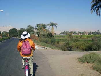 だから、自転車で行きますというと、値段はがくっとEGP190まで下がり、囁くように「いえね、西岸の道路は大型観光バスがびゅんびゅん走っていて危ないんですよ。先日もね、外国の観光客の若い女性が自転車で観光していて交通事故にあわれたばっかりでねぇ」と畳みかける。