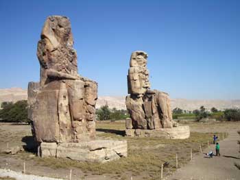 新王国時代絶頂期の王アメンホテプ3世の像だそうで、この後ろには彼の葬祭殿があったのだそうだが、後の王たちが石材として使用して完全破壊された(「地球の歩き方」の説明より)とある。