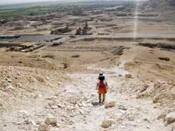 道はハトシェプストの右手の丘の尾根沿いにずっと先まで続いていて、この道に沿って更に15分も歩くと、本当にハトシェプストを真上から見られる位置に来る。